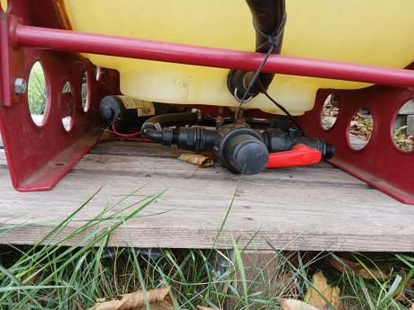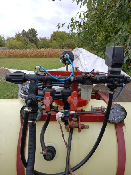 Válasz VMisi #866. hozzászólásáraJobb oldal a szívó oldal, bal a nyomó, a szürke tekerő a nyomásszabályozó a kis rövid cső a visszatérő. A fúvóka, kijuttatandó mennyiség és sebesség szerint beállítod a nyomást az óra szerint és kész.
