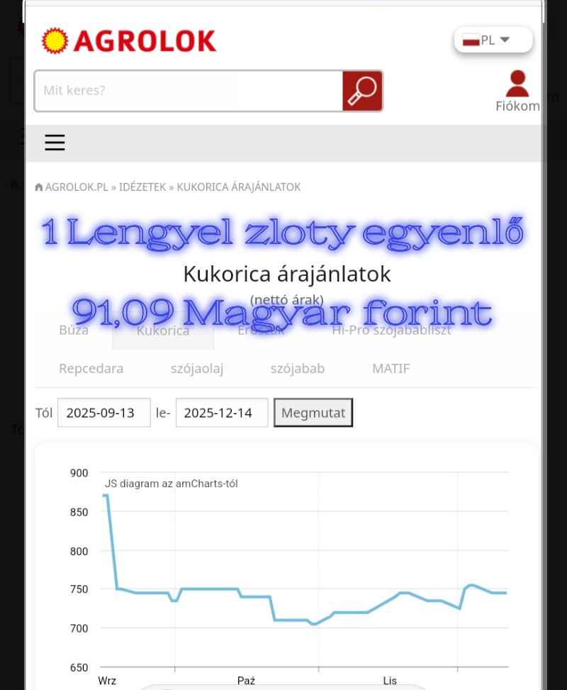 Válasz Praetor #15190. hozzászólásáraIlyenek az árak?Én azt látom hogy folyamatosan csökkennek az árak...beérik a külföldi kukorica ,mire tavasszal mindenki kiakar szállni már jóval olcsóbb lesz mint most vagy aratáskor.