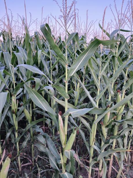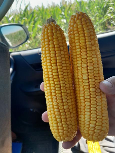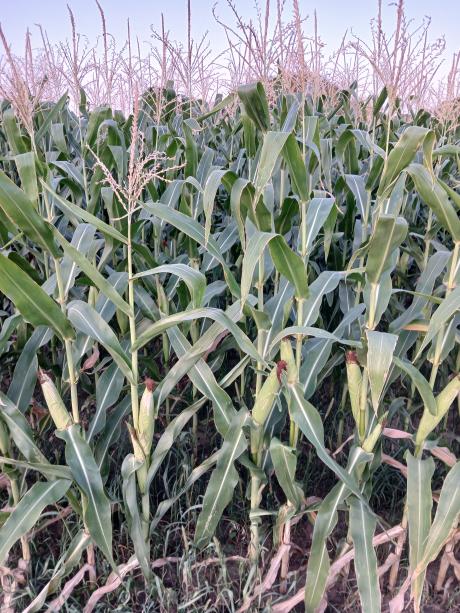 Nálunk az utolsó pillanatban jött az eső, a derékig érő kukoricák is megugrottak. Jöttek is a 100 mázsa feletti jóslatok. Múlt hét végén több parcellába is besétáltunk, mert autóból nagyon szépen mutat a két méter feletti kukorica. Sok helyen látni, hogy egy egy kukoricán van akár 2 cső is, de beljebb 1 darab 20 centis vékony cső a többség. Nem tudnám megmondani, milyen hozam várható, mert annyira változó. Amit tárcsázásba vetettem, ott olyan kicsi csövek vannak, hogy át fog csúszni a szedésnél, ott csípőig ér a kukorica.Ráadásul már veri fel a gyom, mire oda kerülünk a szedéssel, már teljesen ellepi a kukoricát.