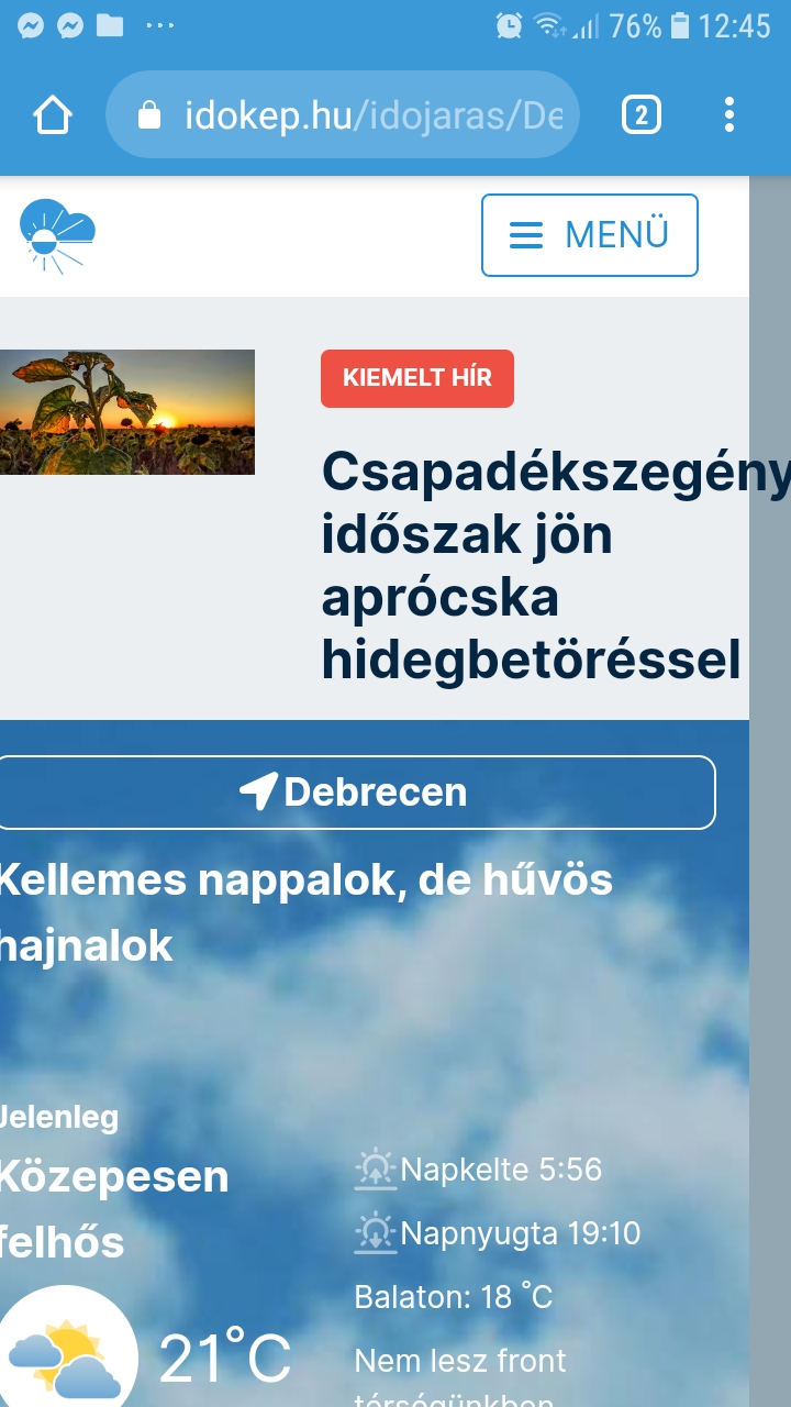Válasz erni #47405. hozzászólásáraSajnos végig anticiklonális hatások uralkodnak majd felettünk. Néha ennek az anticiklonnak a keleti oldalán leszünk, ekkor észak, ék felől csoroghat hidegebb levegő (mint ahogy majd a hét legvégén, jövőhét elején), ezért a hajnalok már egy két helyen igencsak csípősek lesznek.