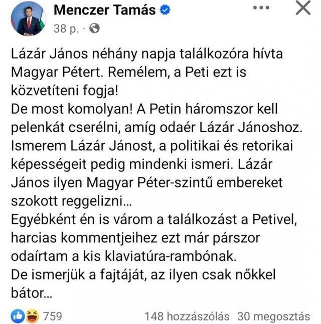 Válasz medikus #161836. hozzászólásáraAz öntudatra èledt tiszásokat behúzni!