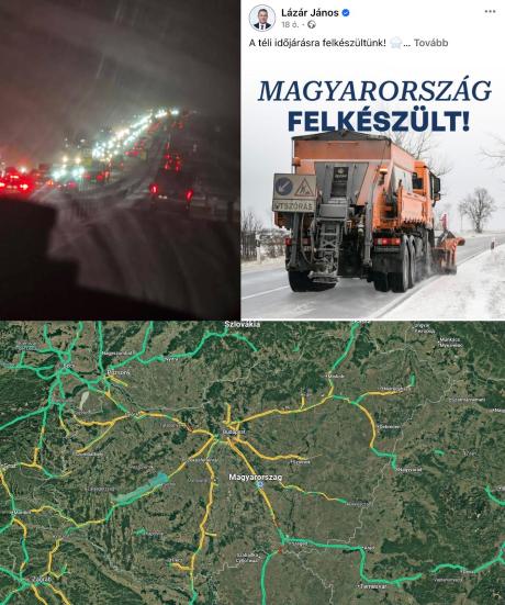 Az autópályák letakarítva esetleg, de mellékutak lezárva, ha majd Hanzi bácsi a saját tolólapos traktorjával önszorgalomból eltolja a havat, be lehet menni a faluba.