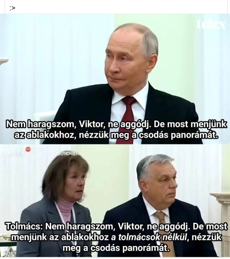 Amúgy tudja valaki hogy Orbán minek volt Putyinnál? Persze azon kívül hogy a tolmácsolás miatt ki nevettette magát?