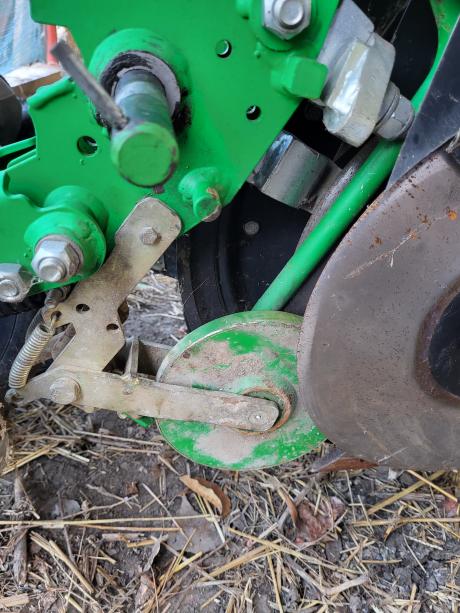Megoldás, a két meghajtó kerék rugóján spanoltam, hogy feszesebb legyen. Azóta úgy rakja a vetőmagot meg műtrágyát is ahogy kell.
