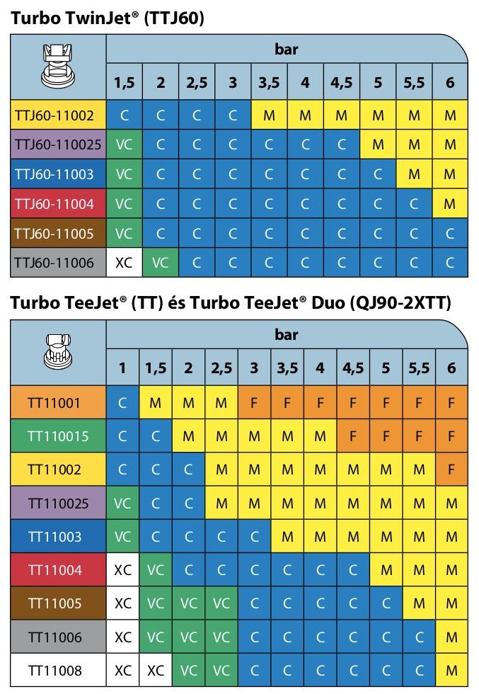 A TTJ60 nem csak a kialakítása miatt tűnt nekem hasonlónak a TT-hez, hanem mert a TeeJet egy ilyen chartot is rakott bele a katalógusába: