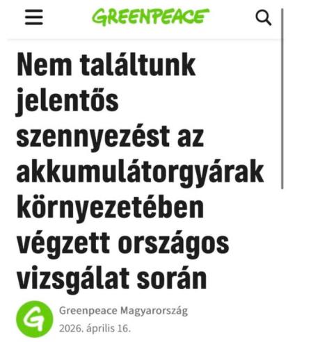 Most hogy lezajlottak a választások,a Greenpeace hirtelen megtalálta egyik fiókjában,hogy semmi károsat nem találtak az akkugyárak környékén vett vízmintákban! Érdekes! Pedig Péter gazda is hergelt mellettük!