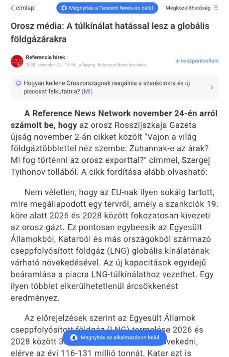 Válasz Koczka József #147274. hozzászólásáraAkkor miért veszi európa az amerikai lng-t ha itt a dögolcsó európai?És hol volt eddig ez az olcsógáz amikor azt hallgattuk hogy meg fogunk fagyni mert nincs más csak az lngMeg mindenki az lng átfejtőt épiti ész nélkül.Zavaros az egész.