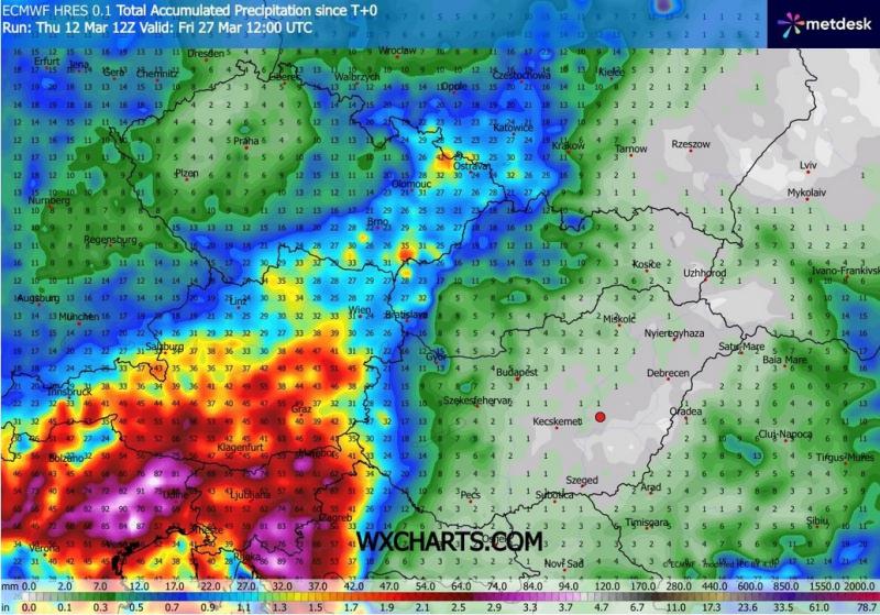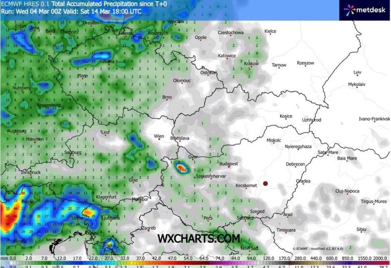 Válasz kulakman #64809. hozzászólásáraMárcius 15 ig nem várható jelentős csapadék. Ma a dunántúl észak nyugati részén lehet 2-3 mm, máshol csak nyomokban, vagy semmi. Ne üljünk fel a riogatásra, mára az ország 80% ra csak elvétve jósolt csapadékot és ez a hónap közepéig biztos nem változik.