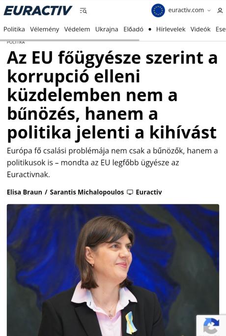 Válasz Sanyiii70 #163639. hozzászólásárahttps://www.euractiv.com/news/politics-not-crime-is-the-eus-biggest-problem-in-tackling-corruption-europes-chief-prosecutor-says/