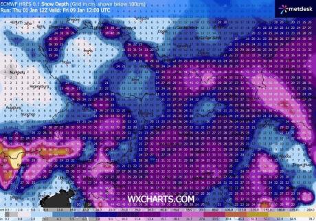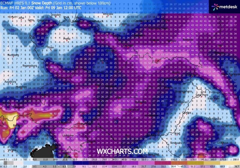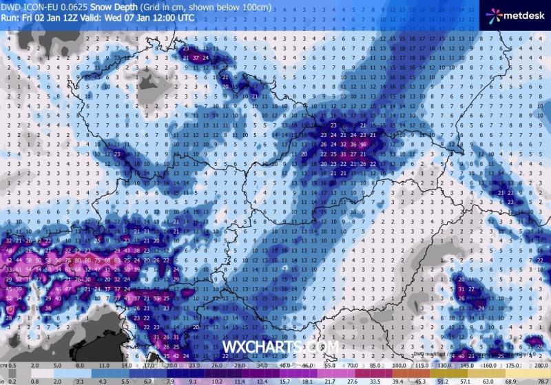 Január eleje havasnak néz ki, több napja tartják a modellek a 10cm fölötti havat.