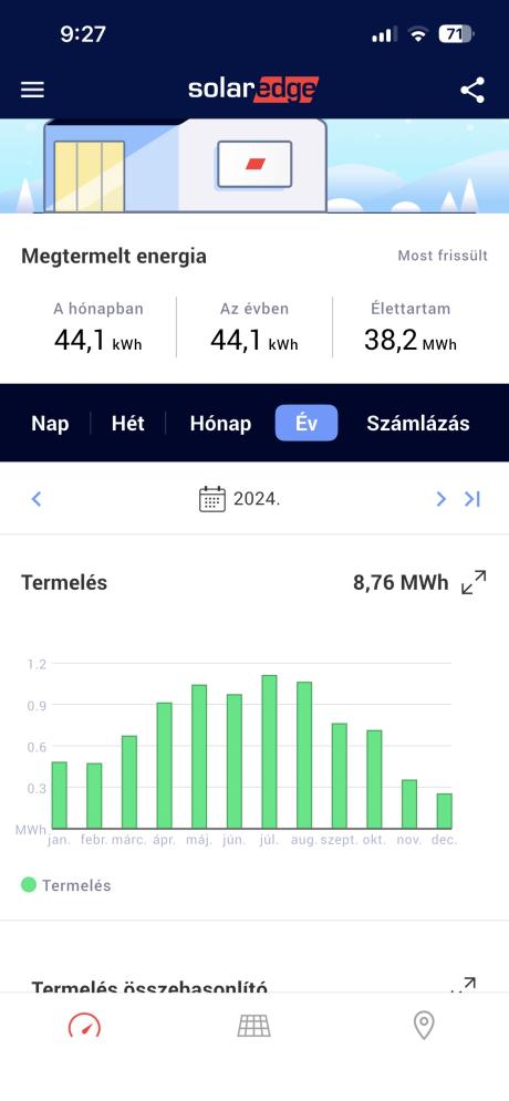 Válasz ..,-:) #774. hozzászólásáraA napelemes rendszert annak tudatában kell betervezni, hogy télen pár hónapig nem fog megfelelően termelni. Az év nagy részében azért nem rossz.