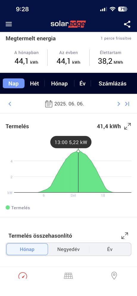Válasz MTZ1221.3 #784. hozzászólásáraAsszem a napi csúcs termeléseink 110 kW körül vannak ezen a rendszeren. Ez a legkisebb is. Van 22, 25, 29. Egyenlőre óriási kidobott pénz, mert ugye hozzá lett költve, fejlesztve elég sok minden.