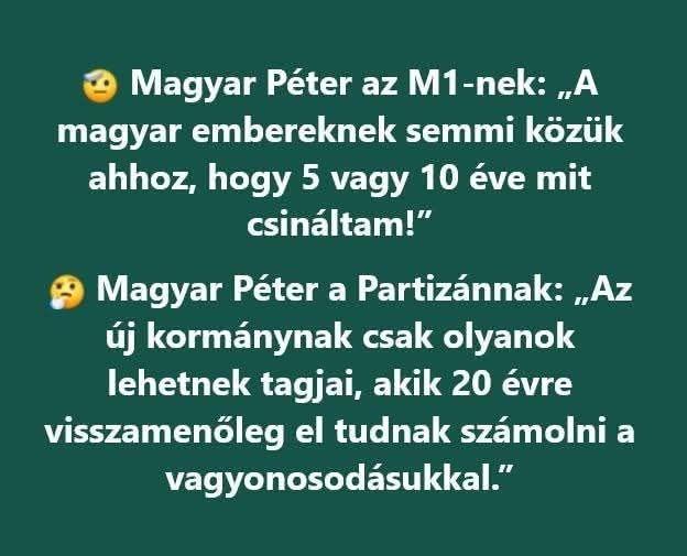 Válasz Igazi Földönfutó #139088. hozzászólásáraAz igazi műsor az lesz,mikor a 106 ember vagyon nyilatkozatot tesz Petinek!