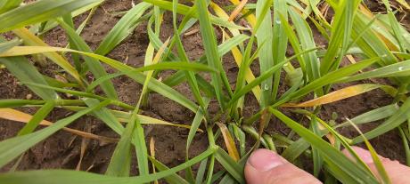 Az egyik gazdatársam is így járt itt, akivel beszélgettem, hogy besárgult a növény, a szakmérnöke szerint bestresszelt, mert mélyre volt vetve, majd kinövi szerinte.