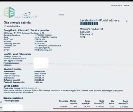 A számla 2022. évből származik.