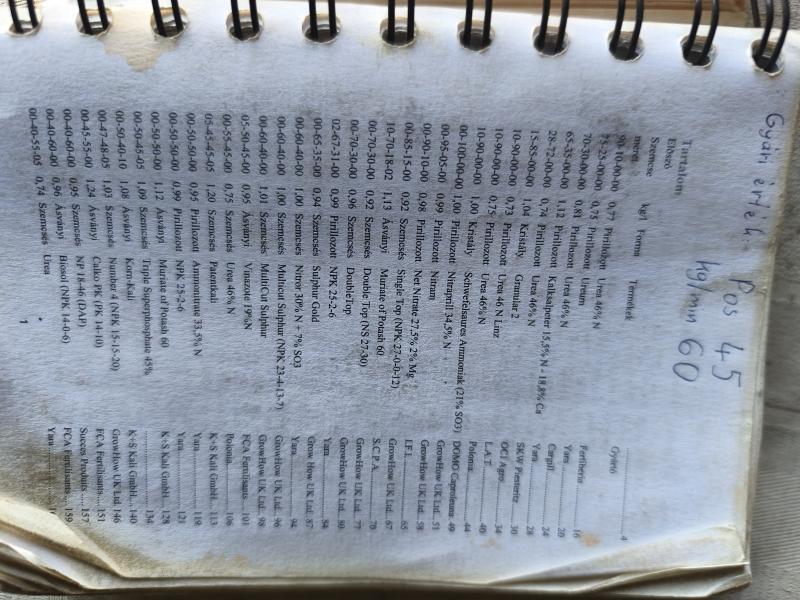 Beírod a VN számát a gépednek és a legújabb műtrágyák is benne vannak. Magyar nyelvű.