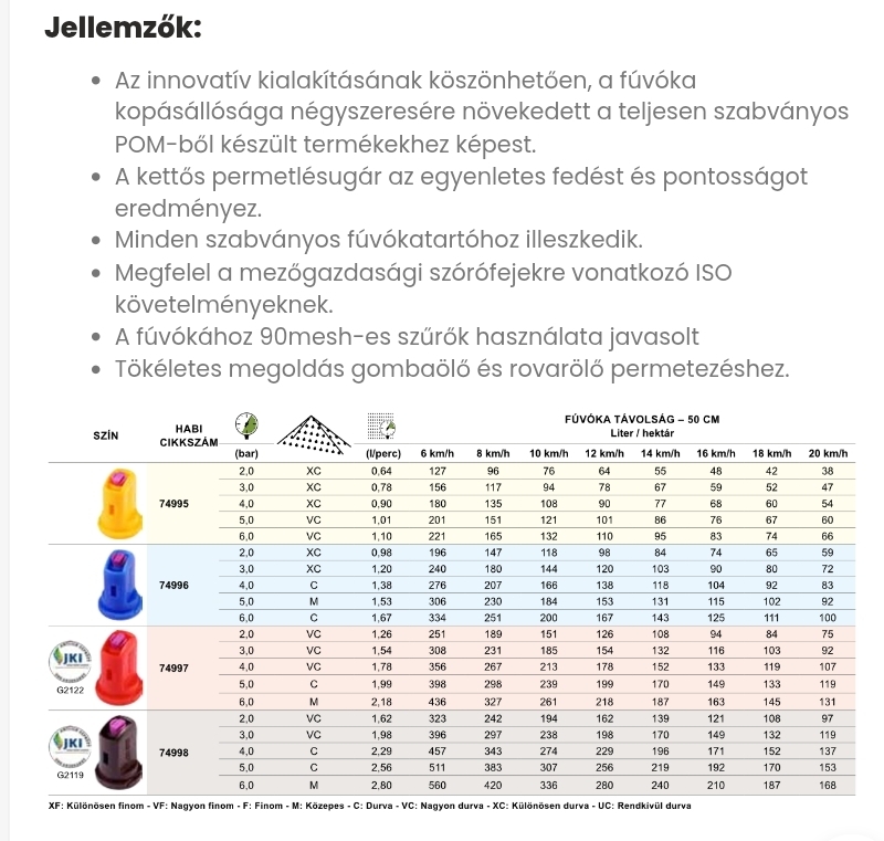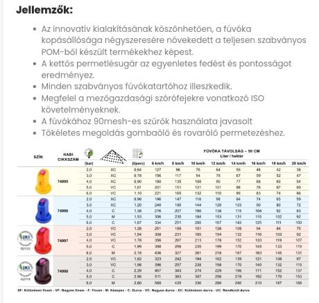 Válasz MrPoke #732. hozzászólásáraAgroplast? Inkább pirosat ajánlasz a 200 literhez? Sajnos nem találtam ehhez a fúvókához táblázatot.