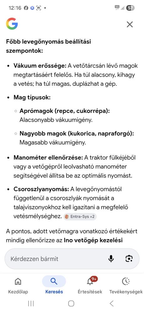 Válasz kori01 #524. hozzászólásáraAláfeküdtem. Nem is hoz le azokban lyukakban magot. Szerintem a nyomással lesz a gond már tudtam venni órát csak nem volt időm még felrakni. A könyve szerint 0,14 báron vet a leg jobb minőségben.