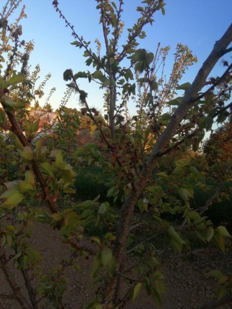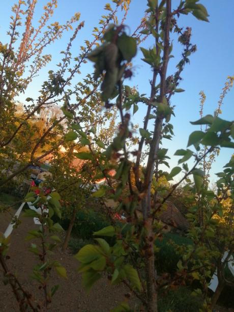 Az egyik fajta barack, idén virágzik először, holott azonos időben kiültetett fák /más fajták/ már pár éve teremnek.