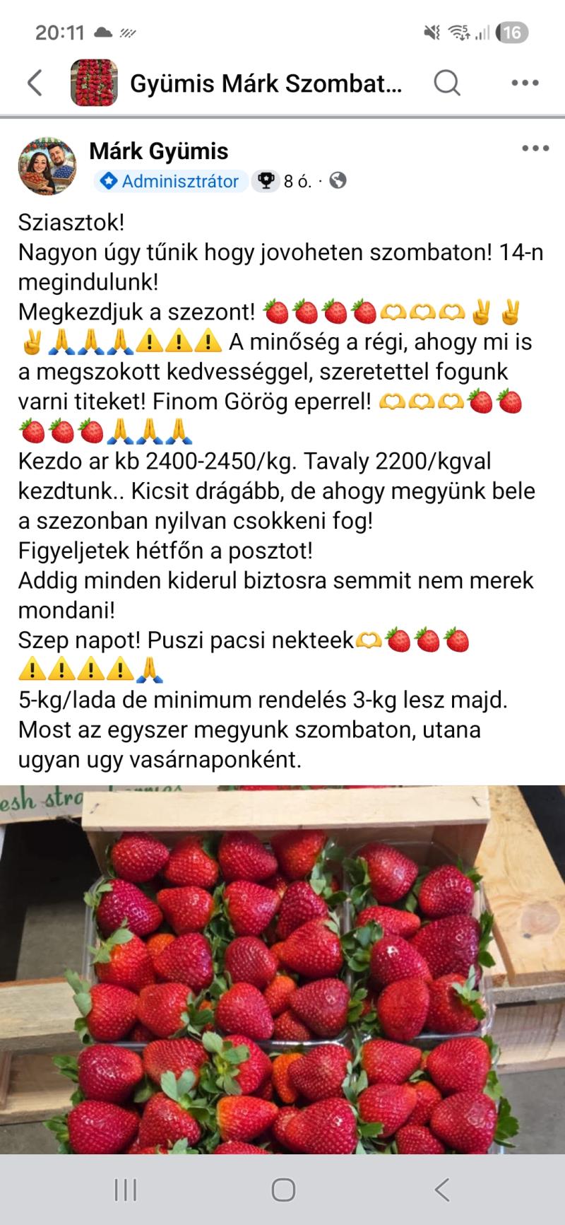 Felènk jobb az ára ???? azt nem tudom megérteni, hogy honnèt szerzik be, vasárnap a nagybanin 2800 Ft/kg volt ennek a minőségű epernek az ára.