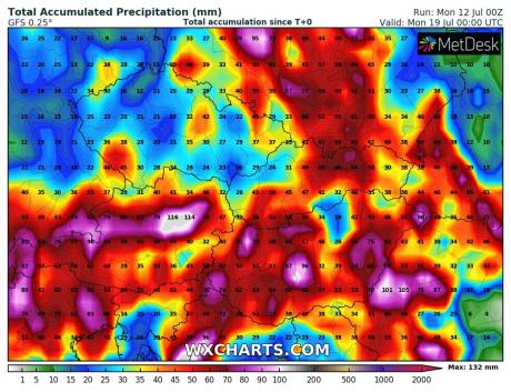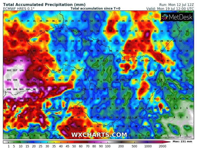 Erős különbség az egy héten belül várható esőről...